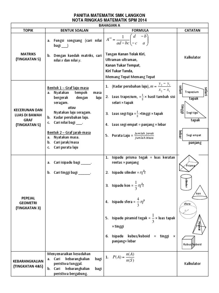 Basic formula untukl ujian matematik tingkatan 4 dan 5. D 2sqrt s π di mana d . Sebarang prisma yang mempunyai luas keratan rentas yang malar sepanjang tingginya: . Sambungkan titik persimpangan ke tengah. Peraturan untuk menentukan diameter wayar elektrik atau kabel elektrik. J = jejari permukaan bulatan, t = jarak antara permukaan bulatan.